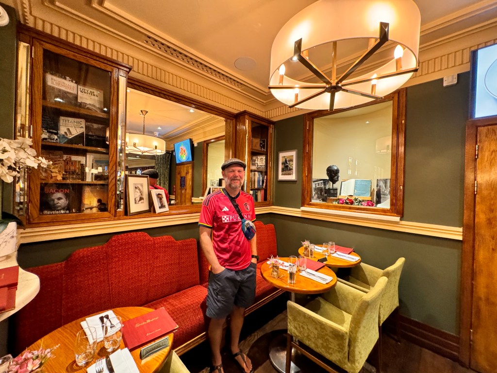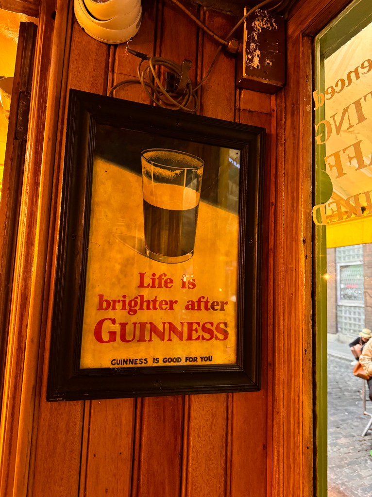 The other place we went to was Mulligan’s. Mulligan’s was the opposite of Davy Byrnes. This was an old pub that was still old and unrenovated and seemed like it probably looked the same as it did in the short story “Counterparts” from Joyce’s Dubliners. In the story there is a scene that takes place in a parlor room in that exact bar. I looked in the parlor room and took a picture standing outside of it but couldn’t really go in because a group of Irish football fans were in there drinking it up, prepping for a big game that evening. It was good enough for me to just see the place, I could see that scene happening in that little room almost exactly as it looked in my mind when I read it. Mulligan’s also had a Beamish Stout on draft. The holy trinity of stouts in Ireland are Guinness, Murphy’s, and Beamish. I hadn’t seen a Beamish anywhere except at Mulligan’s, so we got a table, and I drank my pint and took everything in.