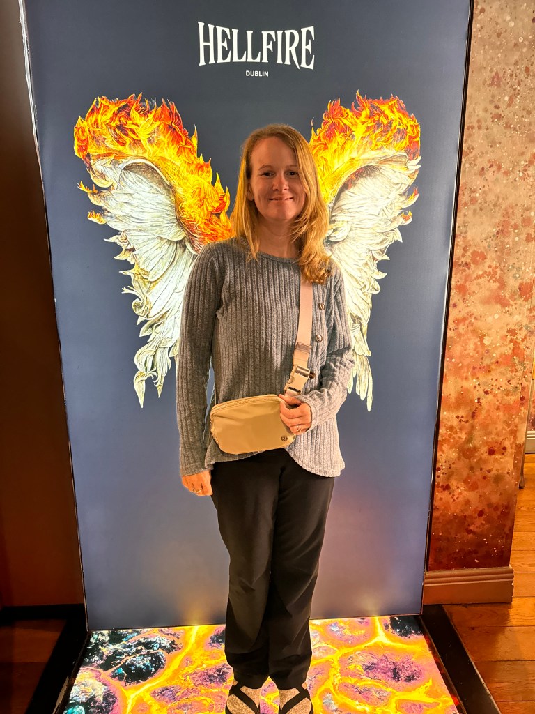 The second thing we had on our to do list was a restaurant called Hellfire. This was something that caught Tassa’s eye on social media and they boasted a vegan medallion steak on their menu. Tassa reserved a table for us on Saturday at noon. The place did not disappoint! Tassa had the vegan steak and I had smoked salmon tortillas. I would not go so far as to say that Tassa and I are gourmets or anything, but I can safely say we are food enthusiasts. We have adjusted our eating habits from a strict plant-based diet to a more open exploration of culturally relevant foods, like the Guinness beef stew we had the night before at The Brazen Head, but we appreciate the plant-based effort to make food that is creative and delicious. Hellfire was both, creative and delicious! That vegan medallion steak was insanely meat-like and incredibly delicious. I opted for the salmon for variety but in the end, I should have gotten the steak as well because it was just amazing.