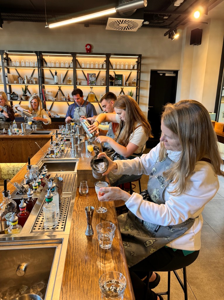 The best part of the tour was the mixology class. We went into a room and each of us had a box that contained a shot and half of whiskey and then an array of mixers. The mixers were all different and represented the full spectrum of the cocktail pallet. There was sweet, sour, salty, and even a savory. After learning about each mixer, we created our own cocktail invention. It was really fun and delicious.