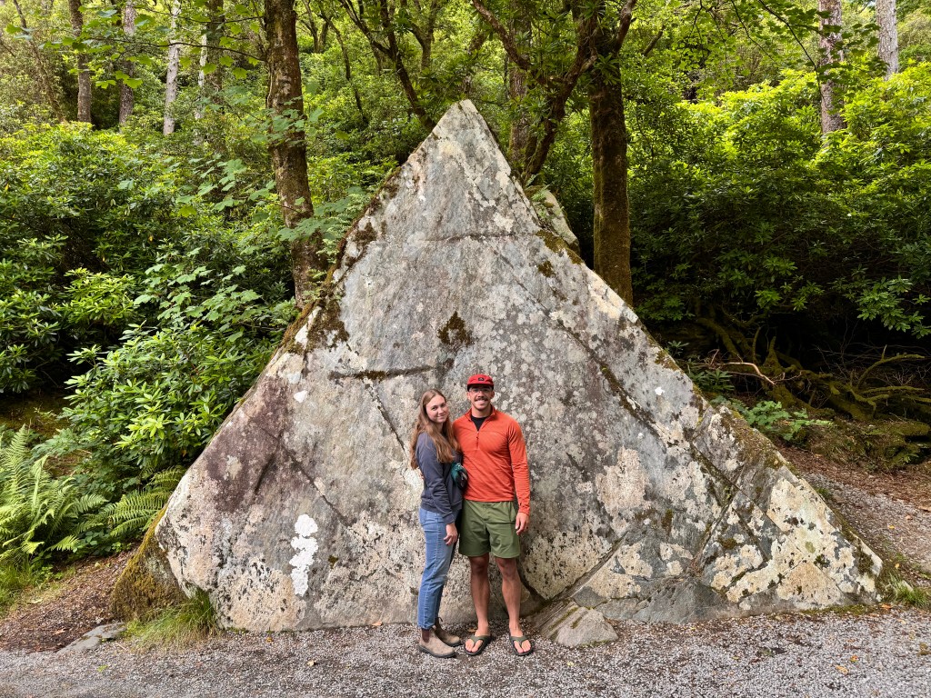 We drove out of Galway and into the Connemara Mountains to the Kylemore Abbey. The Kylemore Abbey was first a castle built by an Englishman, Mitchell Henry in 1868. There was an interesting family drama that went along with the history, the story really captured Tassa and Emma’s imagination. Speaking of imagination, there was this huge triangular stone that was said to be thrown there by giants and if you threw a coin over your shoulder and over the rock without hitting it while making a wish, then it would come true.