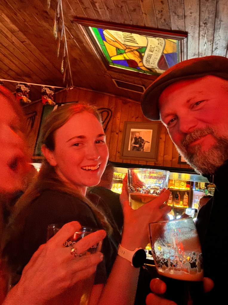 We also had a fun night of partying in Galway. We met up with Cathy and Darrin, who really liked this bar called Monroe’s. There was great live music and we got down for a few tunes. One interesting thing that happened that night was that this guy bought me a 30 euro shot of whiskey. I had ordered a shot and a beer at the bar and a gentleman behind me asked me what I ordered. I told him I got the Power’s 10 year. He scoffed at that and said I needed to try a real whiskey. He called the bartender over and ordered a shot and said something I didn’t really understand. The bartender grabbed a bottle in a box off the top shelf. It was Middleton Very Rare. I didn’t really know what was happening, so I looked at the guy and I asked him if he was buying that shot for me, and he replied “aye.” I then asked why. He said he didn’t want me to leave Ireland thinking that “shite” I had ordered was good Irish whiskey. I was blown away. I took my good shot, my bad shot, and my Guinness back to Tassa and the others and said, “You’re not going to believe this!” The Middleton Very Rare was great and I appreciated this guy’s hospitality and generosity. Ireland is very proud of its alcohol.