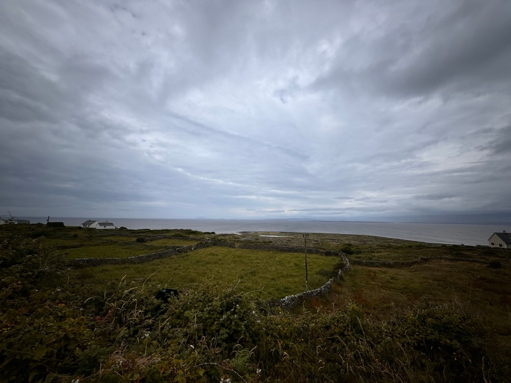 On our second and final day in Galway, we took a ferry out to the Aran Island of Inishmore. This was a definite Irish highlight for me personally. The ferry ride was cold, and while it didn’t really rain, it was damp and drizzly out. When we arrived on the island, we decided to take a bus tour around rather than rent bikes. This way we could all stay together and get the informative guided tour rather than just roaming around on our own.
