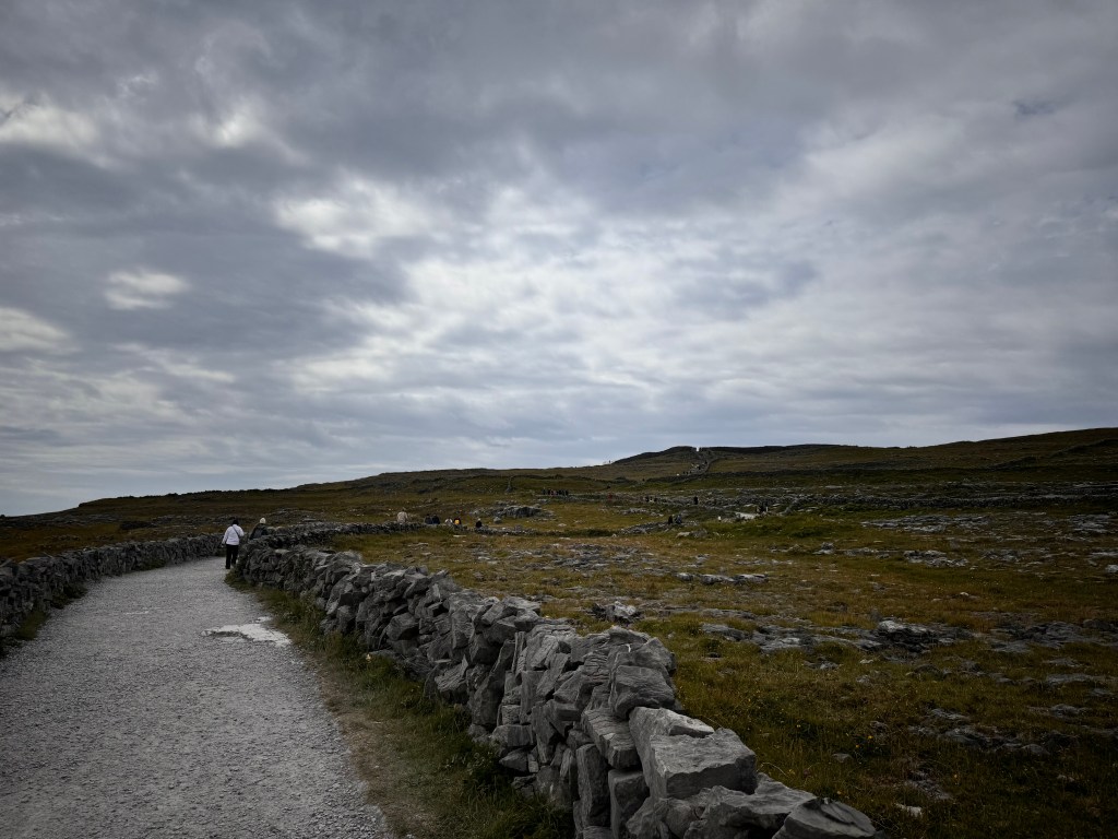 The climax of the tour was seeing the Dun Aonghasa. This is an ancient stone fortress built right on the cliff side facing the Atlantic Ocean. The site is over 3,000 years old. It’s a mile walk from the visitor center to the top of a large hill, on which the site stands. I thought it was one of the coolest historical sites I’ve ever seen and a beautiful view of the ocean and of the Island.