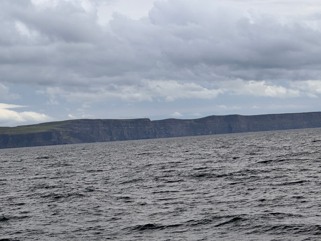 On our return trip from Inishmore to Galway, the ferry boat took us along the Cliffs of Moher. I think most people experience the cliffs by land and walk along the top. Seeing them by sea was an altogether different experience because you could really take in the grand scope of the cliffs. The only downside was that on a crowded boat your view was somewhat limited. However, we felt that seeing them from this vantage point was good enough and we opted not to drive to them on our way to Killarney.