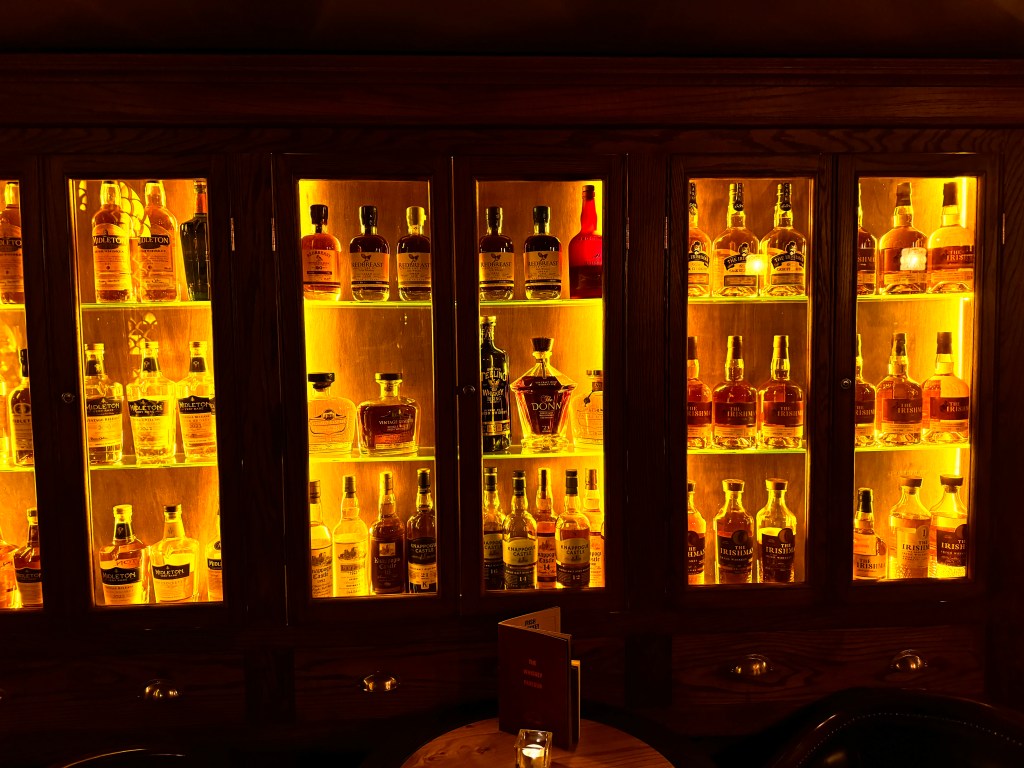 On our final night in Killarney, walking around we found this odd-looking doorway with a sign that read “Pig’s Lane” above it. It led to a tiled stairway leading down to a fancy bar and restaurant. Inside that place was another odd door, above which a sign read, “Whiskey Parlour Members Only.” In there was one of the coolest bars I’ve ever been in. It was like a legit speak easy. There were rare whiskey bottles in glass cabinets all around and a small bar, which was tended by a cool guy from Poland. We chilled in there and had some amazing drinks and an overall grand time. Cathy and Darrin found top, top shelf tequila and were nicely buzzed when someone farted, and Cathy set off the alarm (she is something else, let me tell you) – whoever did it didn’t admit to it, but Cathy let them know it was not cool. Funny as hell but maybe too classy of a place for the now infamous “Who Farted Incident.” We got out of there before things got too crazy. I really enjoyed Killarney and there was a lot left that we didn’t do while we were there.