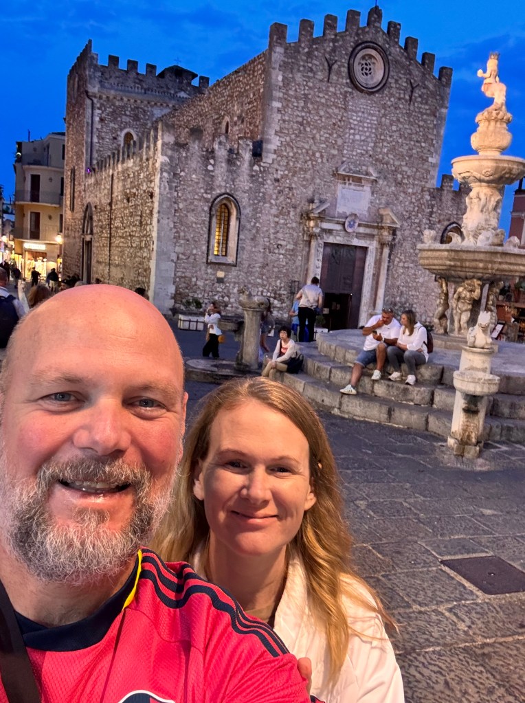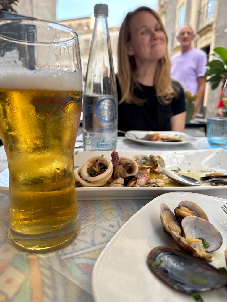 We flew in late Friday night and got our rental car and just drove to the Airbnb, which was about 45 minutes away from the airport. The next day, we drove into Catania. Catania is the largest city on the eastern side of Sicily. A good way to describe Catania is dense. Dense and busy. It felt like you were in a city built into an older city, built into an older city to infinity. Catania is an ancient place, founded in the 8th century BC and there are Ancient Greek and Roman sites. However, we didn’t explore very much. It was very overwhelming driving into Catania, finding a place to park, and just navigating around. We walked around for a while and had dinner at a nice restaurant. I also got a Catania football jersey. We did not venture back into the city for the rest of our trip.