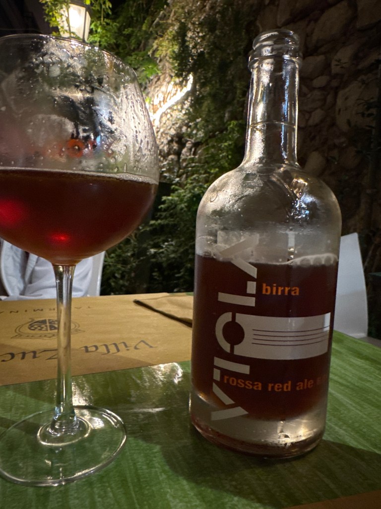 I drove up to Taormina on Tuesday, which was my birthday, to see the ancient Roman amphitheater. Taormina was awesome! It is a city built on top of mountain. You had to drive up this crazy winding road up to the town, which then was a maze of tightly wound streets and buildings that scaffolded up the mountain side. I toured the ancient ruins and thought the town was amazing. Tassa and I went back there later that evening for dinner and to celebrate my birthday. We ate at an amazing pizzeria called La Napoletana and had some very good beers. Italian beers really blew me away. I always try to drink locally and found Sicilian beers to be amazing. I didn’t have any expectations for beer in Italy, but I learned that Sicily has an old brewing tradition with lots of top-quality local beers that left me pleasantly surprised. At La Napoletana, I had a beer called Birra Viola Rossa Red Ale 6.6 and it was one of the best beers I’ve ever had.