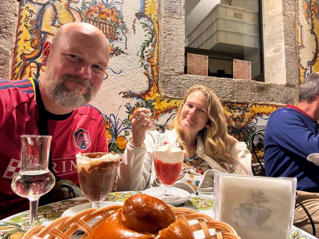 I will say that even though it cost us a descent amount of money to stay in Taormina on top of having the Airbnb in Acireale, it was worth it. There were lots of shops, cafes, and restaurants within a short walking distance from the hotel. If you are thinking of going to Italy and staying in Sicily, I highly recommend staying in Taormina because you’ll get the whole experience in one cool place. It is a bit touristy but honestly, being touristy means there are things to do. Our Airbnb was not in a touristy area at all and there was nothing to do. The best part of Taormina was that there was another village higher up the mountain called Castelmola. There was an insane 4.5-mile trail that made a big loop from Taormina to Castelmola. It was almost straight up and then straight down, and the views on this hike were insane. While Tassa worked, I hiked the trail everyday and one day I hiked it twice, once by myself and then again with Tassa when she got off. Castelmola was a cool little village and paired with Taormina, I thought it was a nice introduction to Italy.